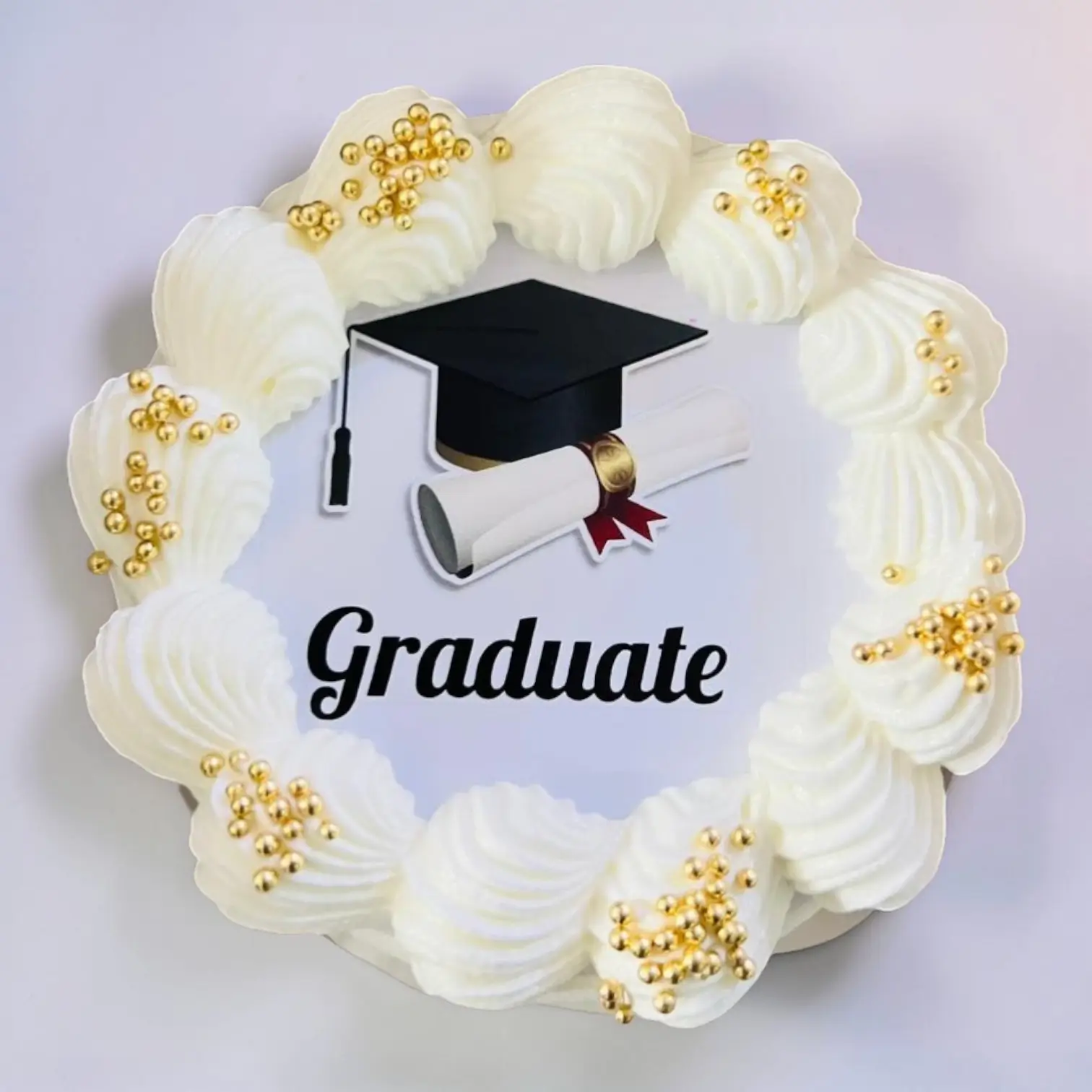 Beautifully decorated with a graduation theme, this cake brings together style, flavour, and meaning in one compact package.